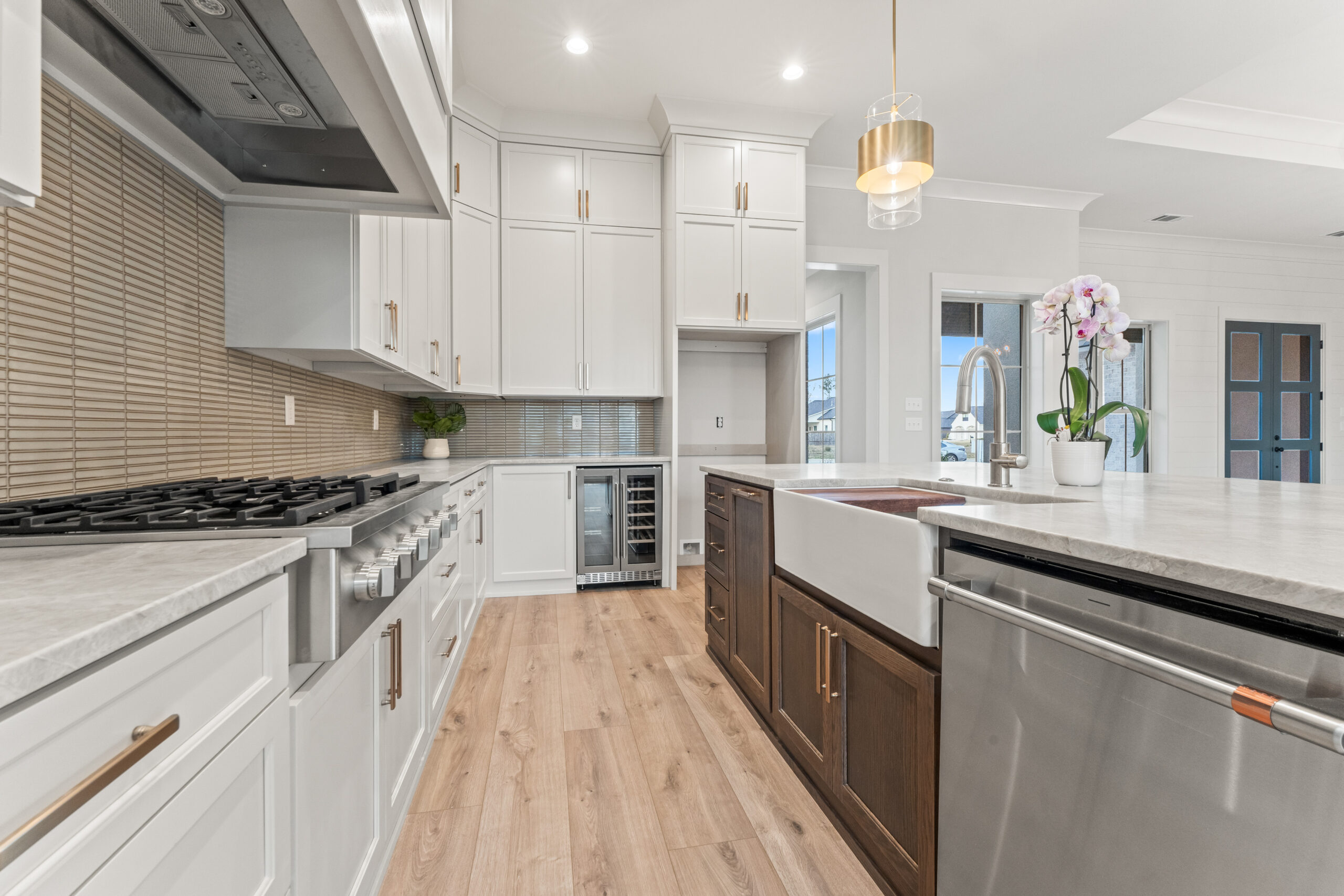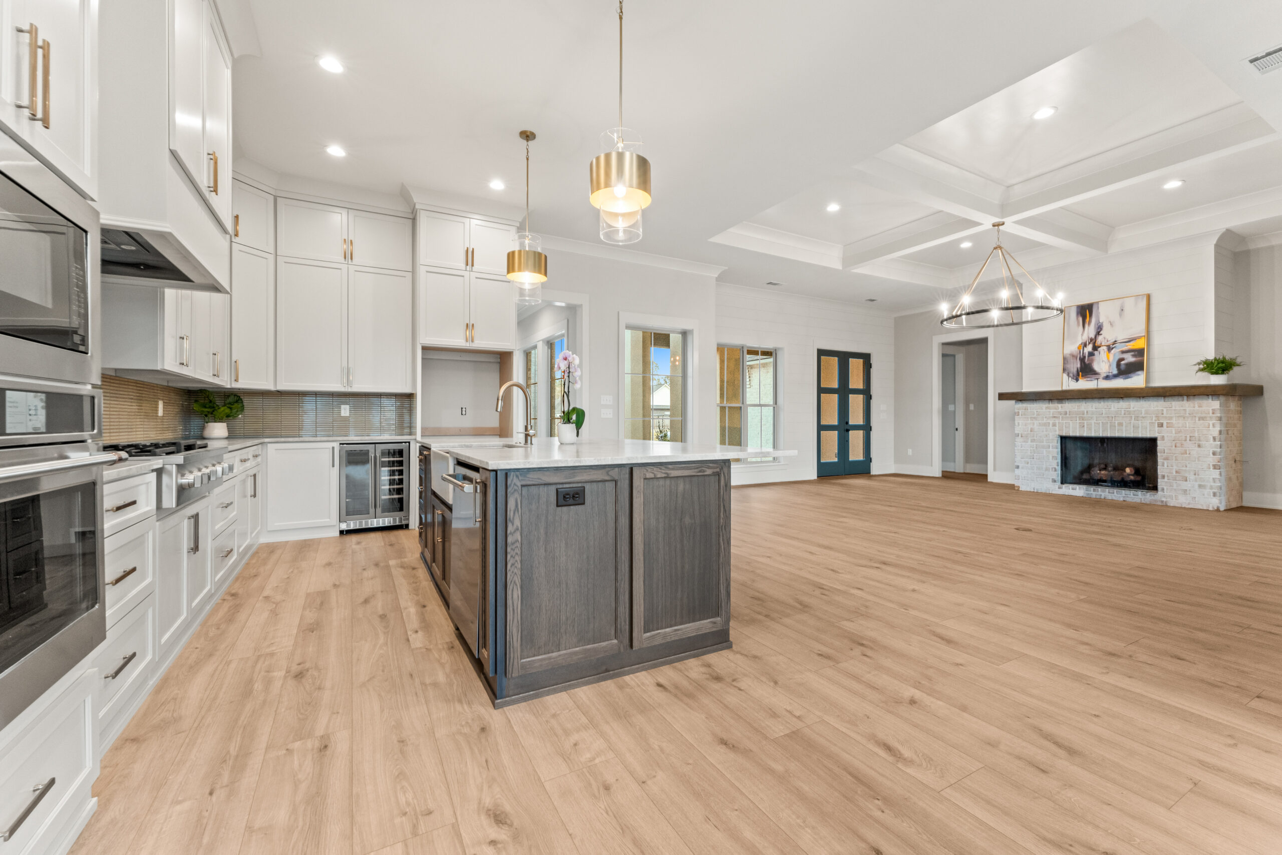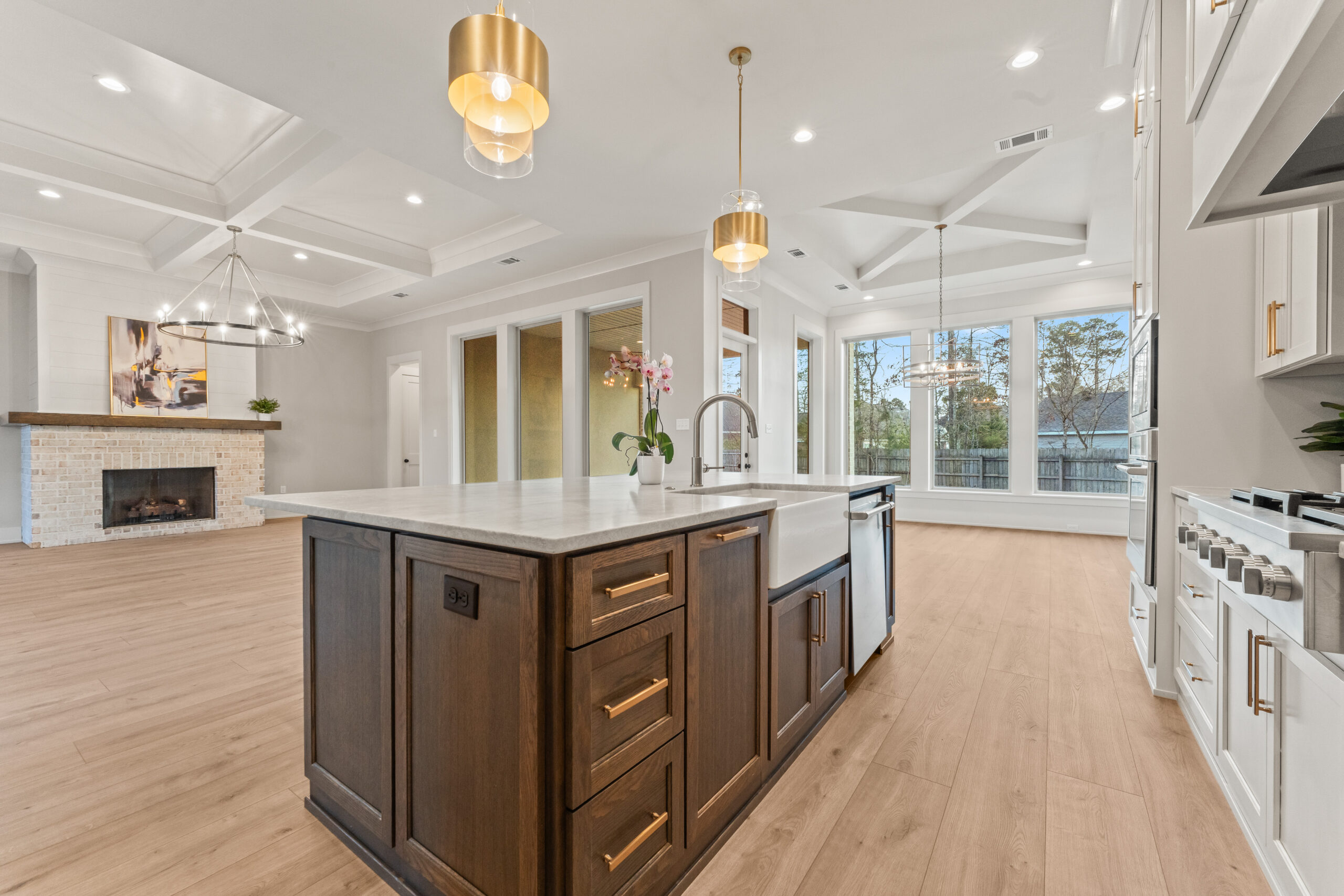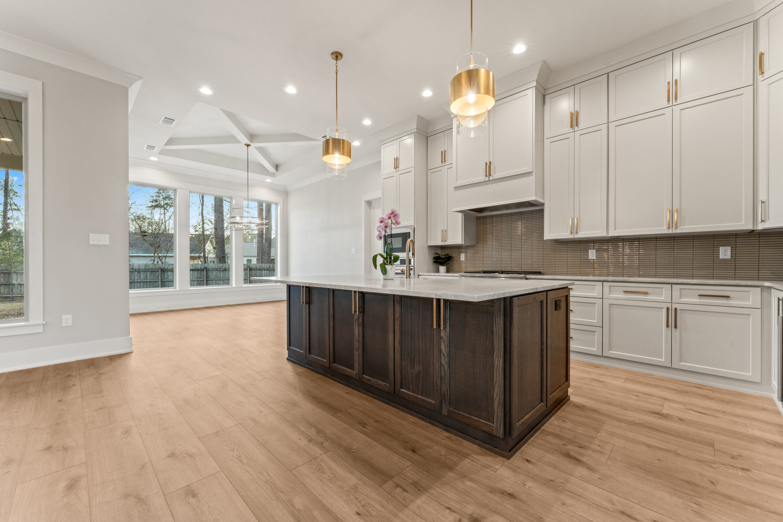Stunning new construction by Integrity Builders Inc. to be completed in approximately 2 months (under construction). 4 bedrooms, 3 baths, with separate office space. Ensuite bath to bed 4 Home will feature Custom cabinets, with Rift Oak Island in kitchen, quartzite countertops in kitchen and primary bath, large custom built Mudroom. Coffered ceiling in living room, custom wood work features throughout. Spacious rear porch. Home backs up to greenspace buffer. Tucked away in quiet neighborhood in Mandeville, close to causeway.